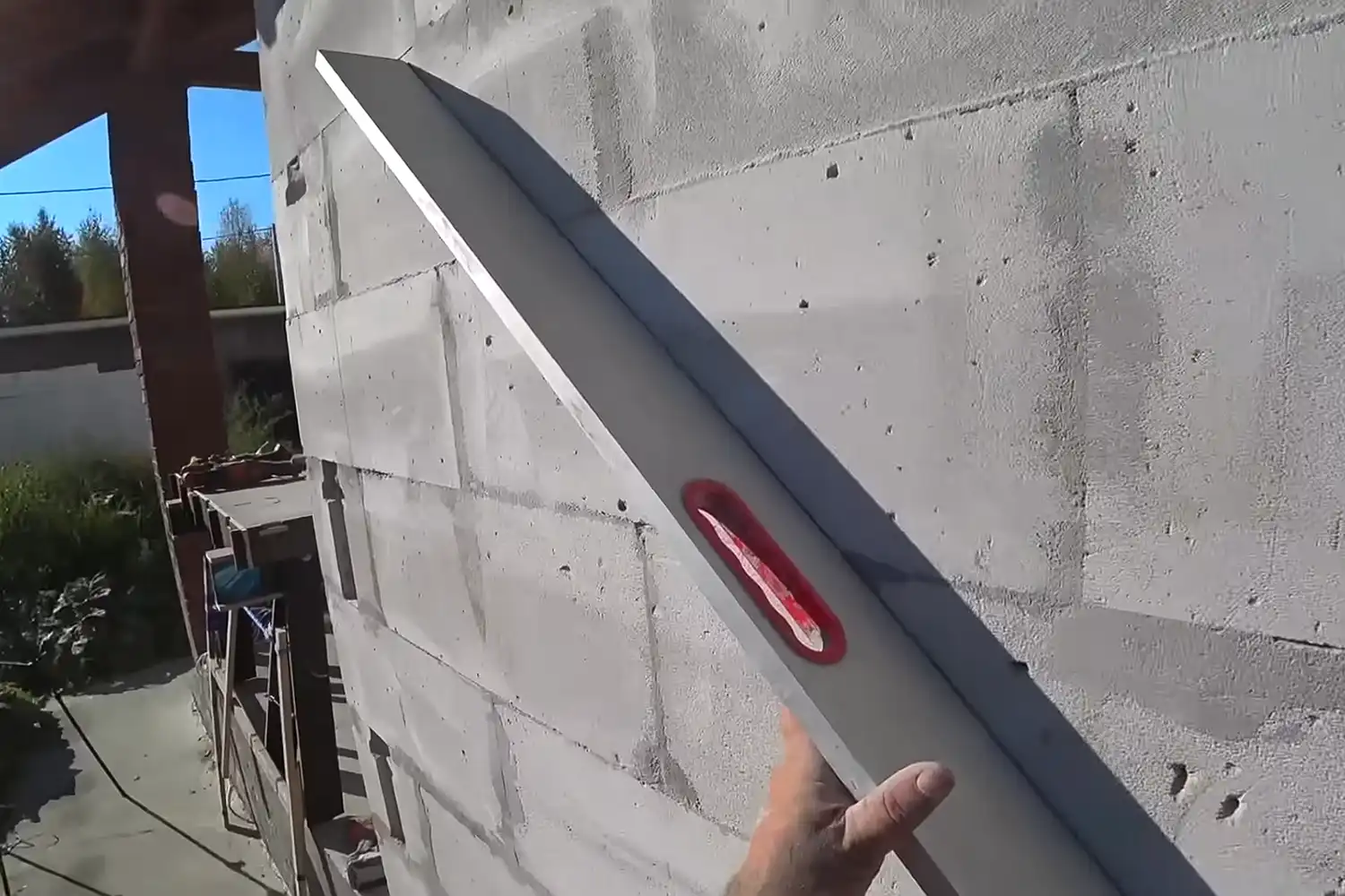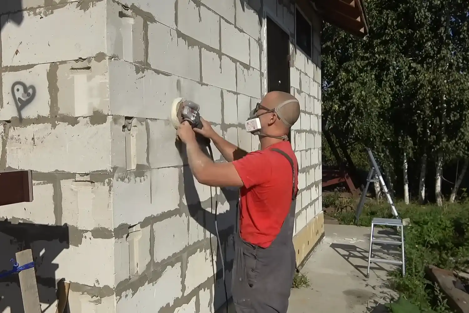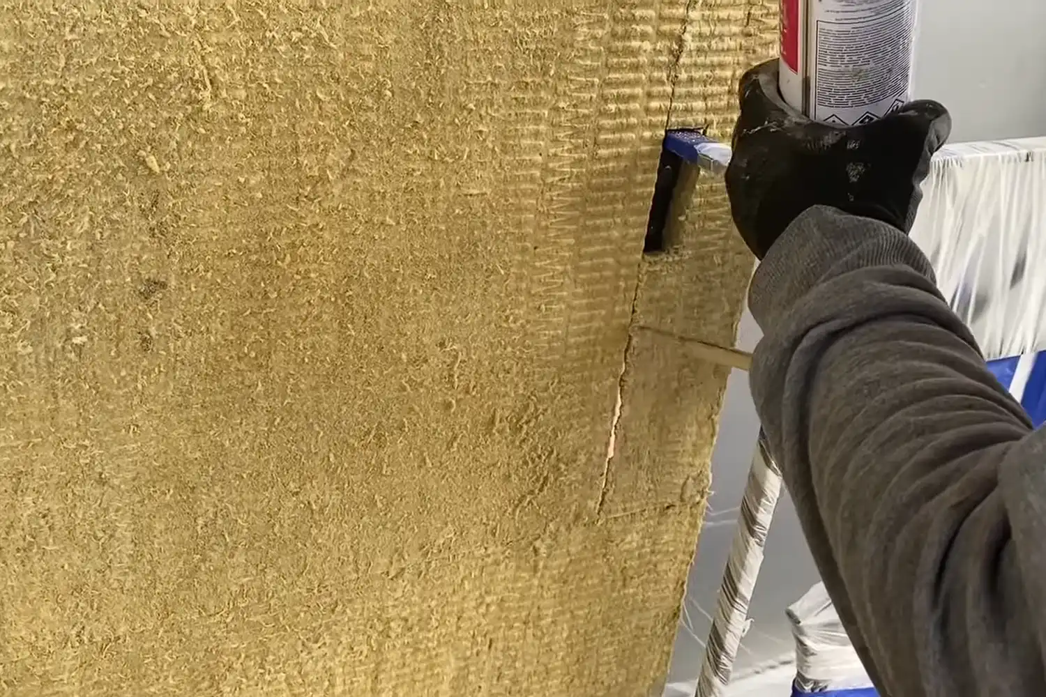 После высыхания (через 24–48 часов) еще раз проверьте ровность стены с утеплителем уровнем, а также правилом. Если есть выступы, наденьте средства защиты и сошлифуйте неровности зубчатой теркой.