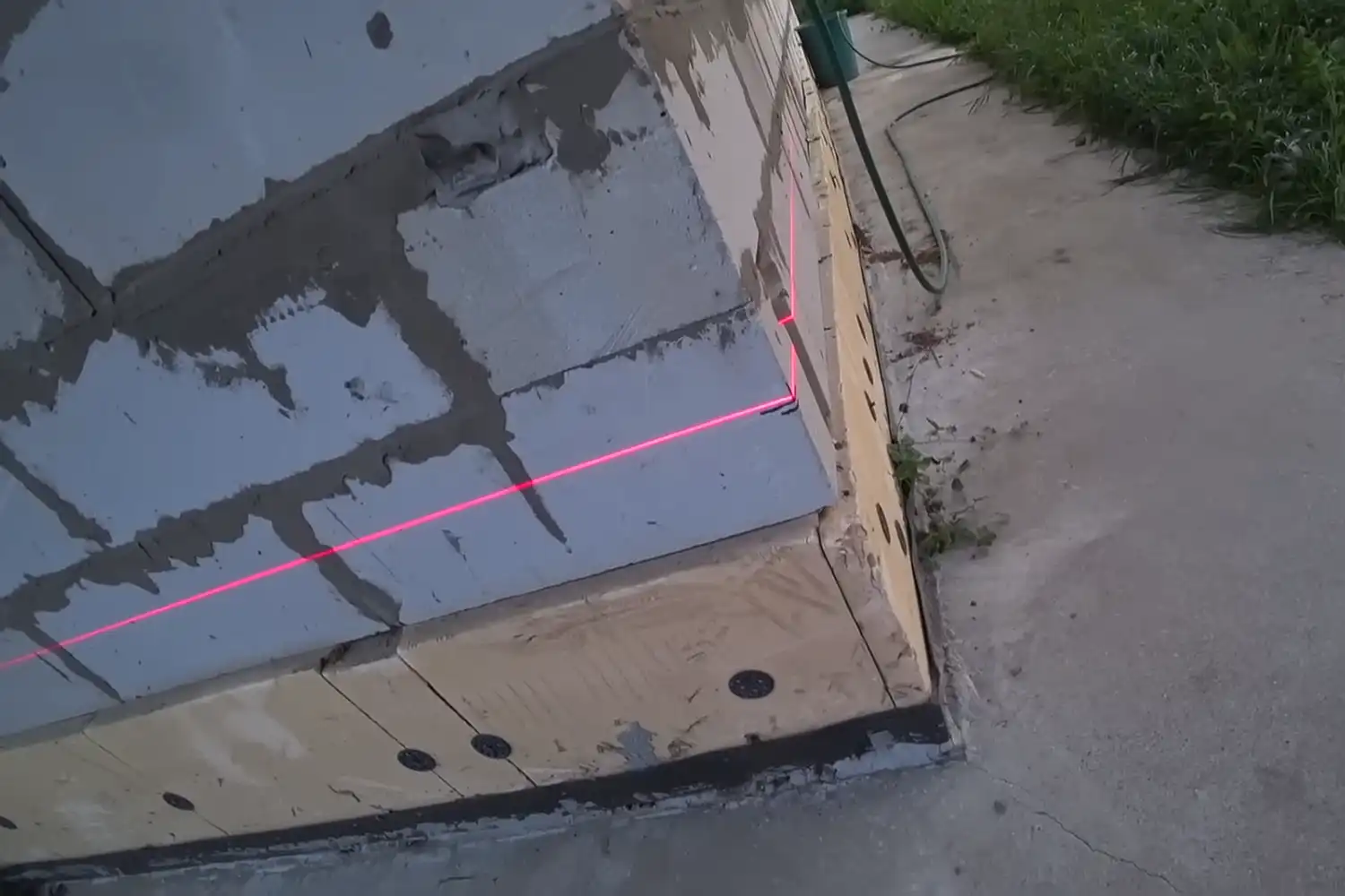 Маркером или шнуром отбейте горизонтальную линию под стартовый профиль по линии уровня или лазера нивелира на расстоянии 30–40 см от земли. Эта граница ― начало укладки первого ряда плит.