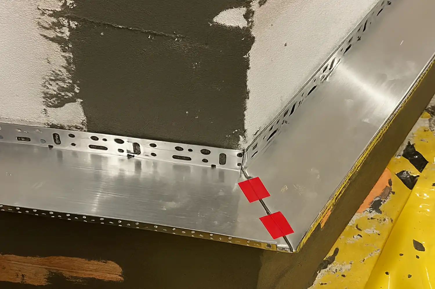Согните профиль до угла 90 градусов. Стороны скрепите соединителями. Приложите к фасаду, чтобы проверить ровность.