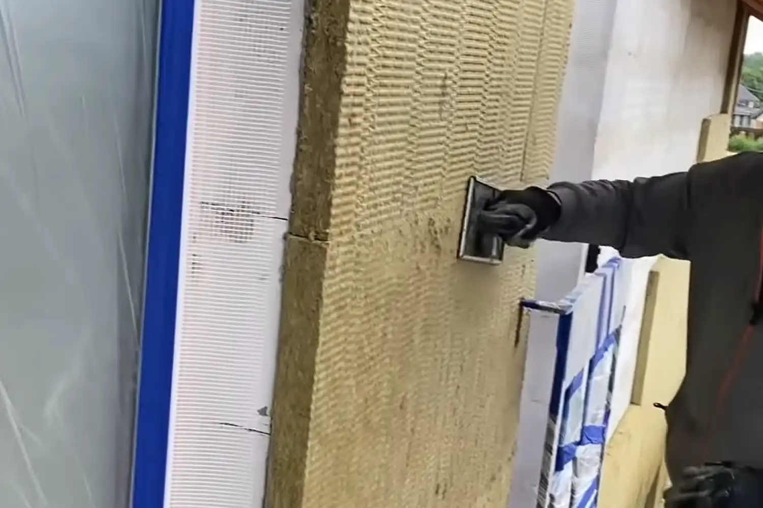 Утеплитель укладывают, двигаясь снизу вверх с прилеганием к основанию и соседним плитам без зазоров. Любые щели снижают теплоизоляционные свойства мокрого фасада и повышают риск образования «мостиков холода».