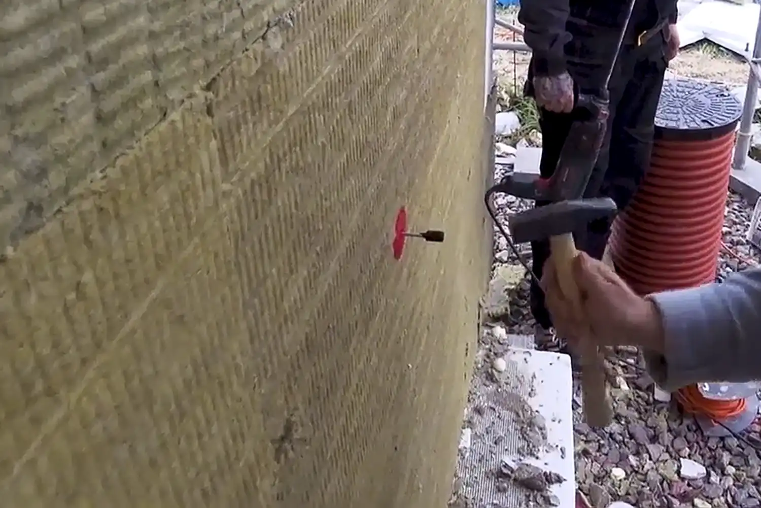 - теплоизоляция — удерживает тепло внутри здания, ее дополнительно фиксируют на тарельчатые дюбели